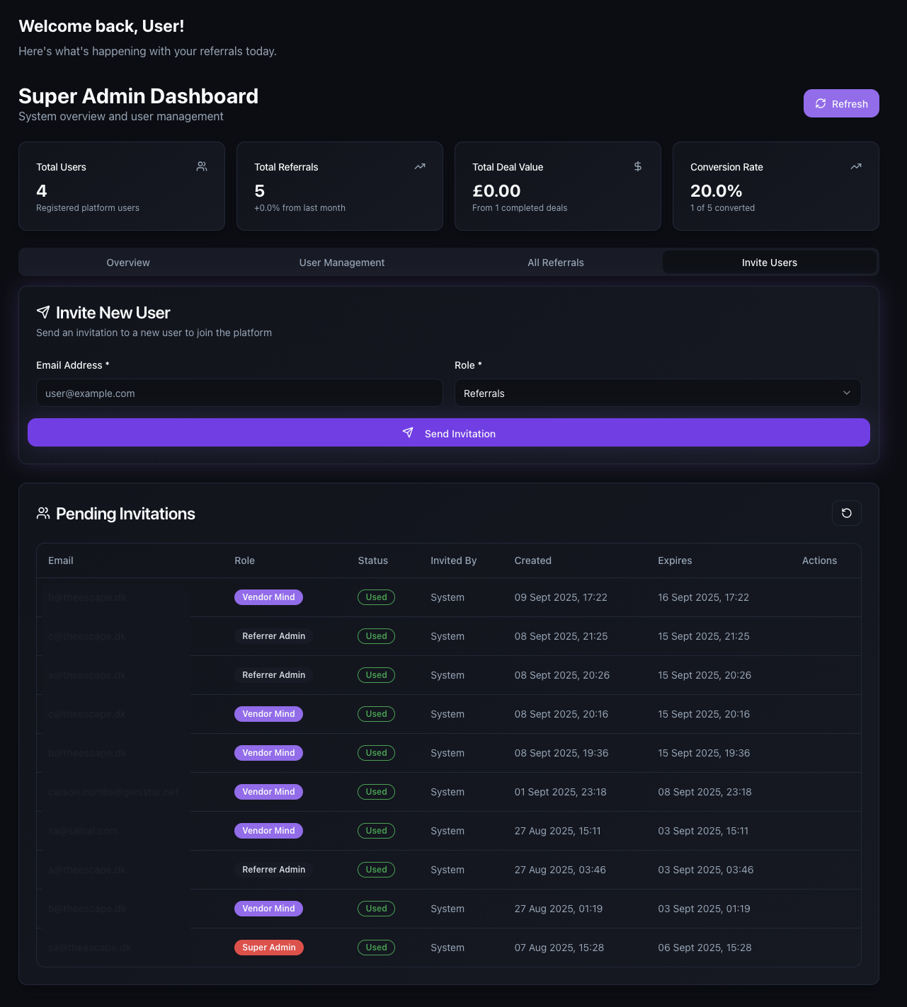 The cross-company referral system reduced manual admin by 90%, eliminated lost referrals, accelerated handovers by 70%, and increased successful referral conversions by 22% while providing full visibility, auditability and compensation tracking for both organisations.